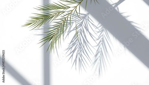 © Ahmadabi, Obraz premium Elegant palm frond casting shadow on a pristine white surface display
