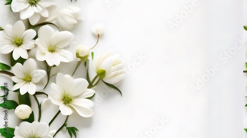 © SayedaRima, Obraz premium Elegant paper flowers and leaves on a pure white background. Generative AI