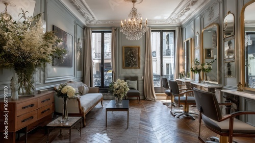 © Kitta Studio, Obraz premium Elegant Parisian Salon Interior with Luxurious Details and Decor
