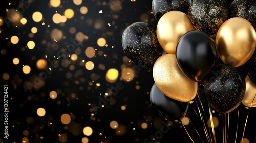 Naklejka premium Elegant party celebration with premium black and gold balloons, soft...