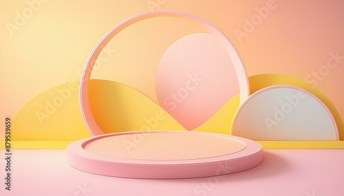 © Mahnoor, Fototapeta premium Elegant Pastel Banner: Circle Effect with Pink and Yellow Gradient"