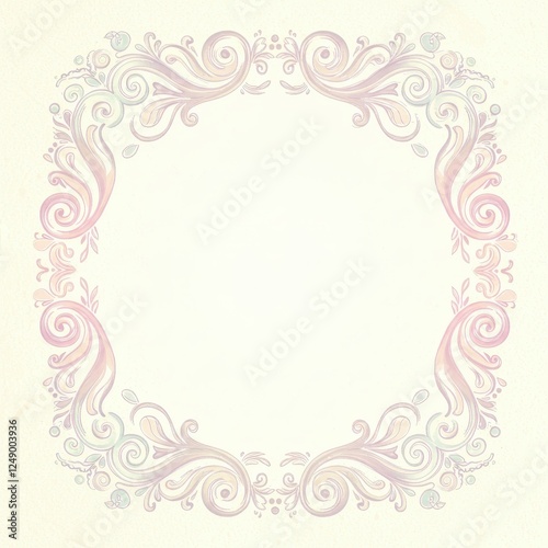 Fototapeta premium Elegant Pastel Floral Frame Illustration for Invitations and Stationery Designs with Intricate Swirls and Leaf Patterns