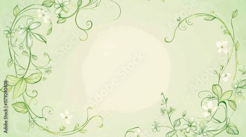 © Umi Sakina, Obraz premium Elegant pastel green floral frame with copy space.