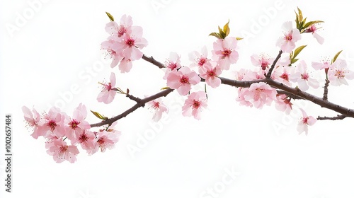 © pkproject, Fototapeta premium Elegant Peach Blossom Branch with Pink Flowers on Minimalist White Background