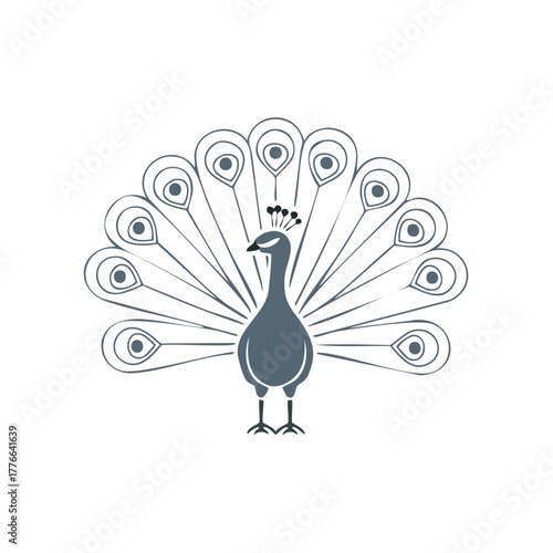 © Anastasiia, Fototapeta premium Elegant Peacock Bird Displaying Its Tail Feathers in Stylized Outline