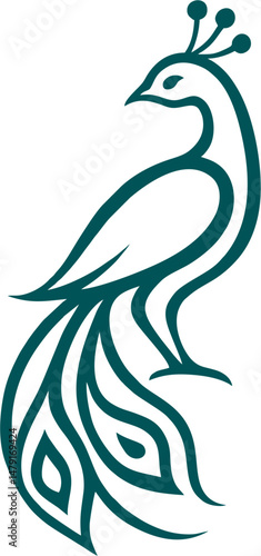 © nurhasanah, Obraz premium Elegant peacock design in single stroke vector
