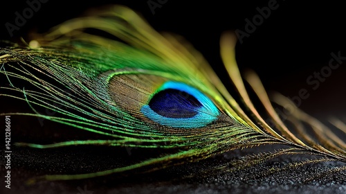 © Xiaoxiao, Obraz premium Elegant Peacock Feather Tip Close-Up