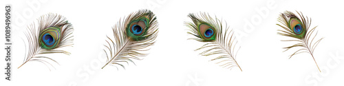 Obraz premium Elegant Peacock Feathers with Vibrant Eye Patterns for Decoration and Design on transparent background
