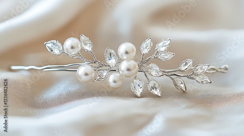 © Fatoniyah, Fototapeta premium Elegant Pearl and Crystal Hair Clip Wedding Accessory