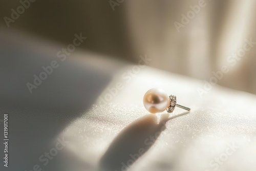 Obraz premium Elegant Pearl Earring with Reflective Light on Soft Fabric Background