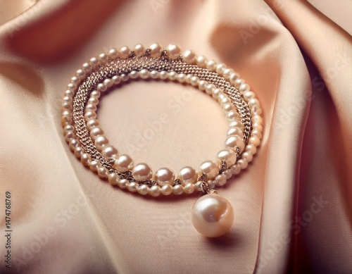 Fototapeta premium elegant pearl necklace on luxurious satin fabric