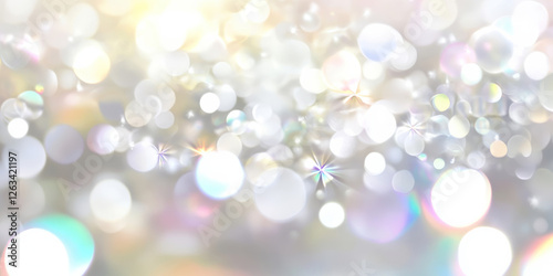 Obraz premium Elegant pearlescent white holographic texture with shimmering rainbow...