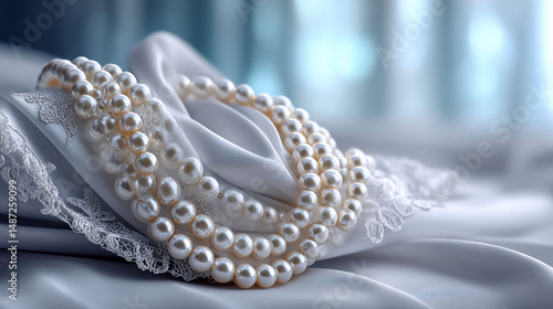 Fototapeta premium Elegant pearls draped on silken fabric