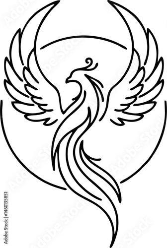© nurhasanah, Obraz premium Elegant Phoenix Tattoo with Feather Arches and Balanced Symmetry