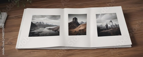 Fototapeta premium Elegant photo album mockup; pristine white pages, sleek design, modern,...