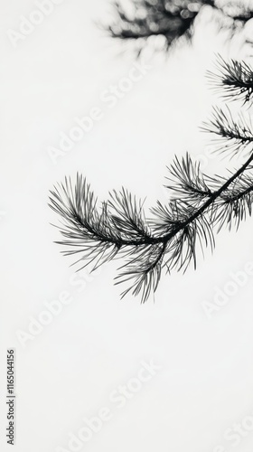 © Montaha Hossain, Obraz premium Elegant Pine Branch Silhouette - A Striking Black and White Botanical Print