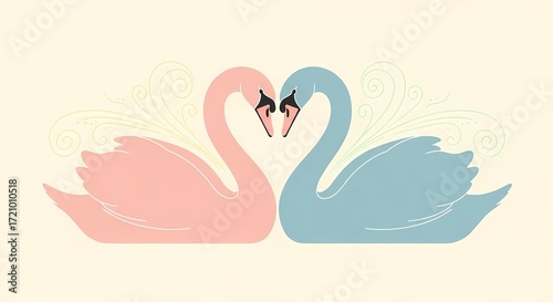 © JNCK DESIGN, Fototapeta premium Elegant Pink and Blue Swans Forming a Heart Shape in a Whimsical Design