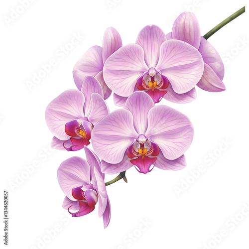 © Pixel Corner, Fototapeta premium Elegant Pink and Purple Orchid Flowers on Branch Isolated on PNG Background.