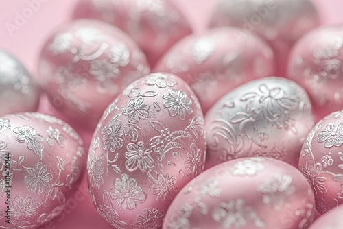 © Sandris Veveris, Obraz premium Elegant Pink and Silver Floral Easter Eggs