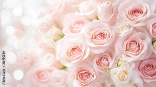 © Elena, Obraz premium Elegant pink and white rose bouquet with soft bokeh background