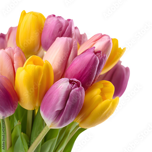 © Cllaire, Fototapeta premium Elegant Pink and Yellow Tulips Floral Arrangement Isolated on White Background