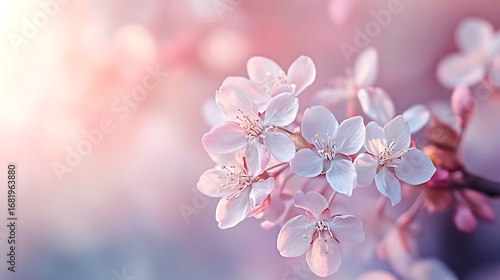 © MiltonKumar, Fototapeta premium Elegant pink blossoms shining brightly on delicate floral branch picture