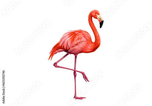 © Asep, Obraz premium Elegant pink flamingo illustration standing gracefully on one leg. Stylized bird with vibrant coral feathers and a curved neck.