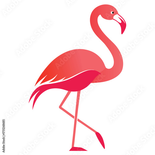 © Kamrulislam, Fototapeta premium Elegant pink flamingo standing on one leg, tropical bird vector illustration for summer design, wildlife artwork, travel poster, fashion graphic, and exotic beach theme branding inspiration.
