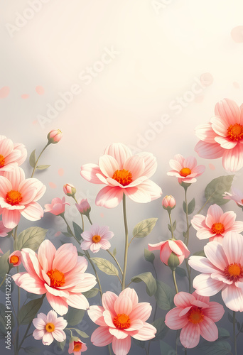 Naklejka premium Elegant Pink Floral Blooms: Nature-Inspired Soft Botanical Scenery with...