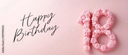 © Fernando, Naklejka premium Elegant Pink Floral Number 18 Happy Birthday Background