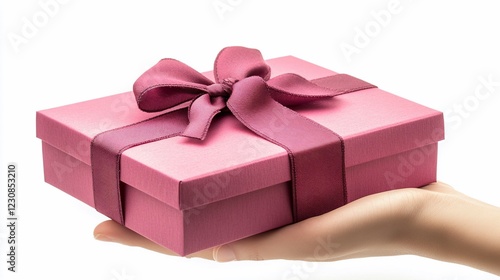 © MUMTAZ, Obraz premium Elegant pink gift box held by a hand, symbolizing celebration and generosity