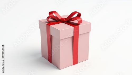 © umut hasanoglu, Obraz premium Elegant pink gift box with a vibrant red ribbon bow on a white background.