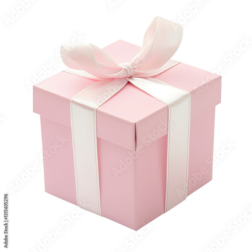 © Matcha_09, Fototapeta premium Elegant Pink Gift Box with Bow for Celebrations, Birthdays, or Special Occasions Displayed on White Background