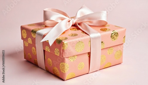 © MdAzizulHaque, Obraz premium Elegant Pink Gift Box with Gold Dots and Satin Ribbon