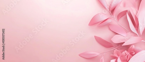 Fototapeta premium Elegant pink leaves on a soft pink background.