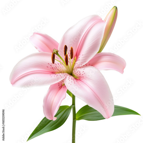 © Alif, Fototapeta premium Elegant pink lily flower in bloom against a solid white background studio shot