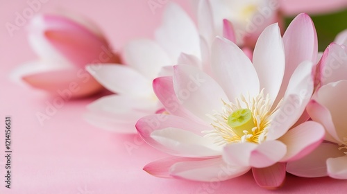 Fototapeta premium Elegant Pink Lotus Flower on Soft Pastel Background for Tranquil Decor :...