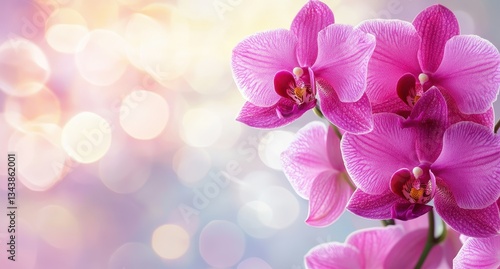 © VibrantLens, Fototapeta premium Elegant pink orchids with a dreamy bokeh background.
