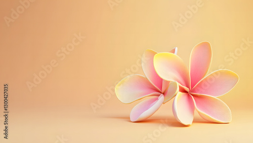 © Mahmud, Naklejka premium Elegant Pink Plumeria Flowers on Peach Background 3D Render