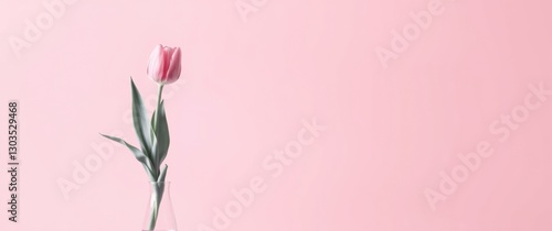 Naklejka premium Elegant pink tulip, softly lit against matching backdrop, exudes simple...