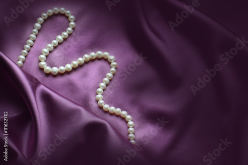 © Marrina, Obraz premium Elegant purple background with silk and pearls