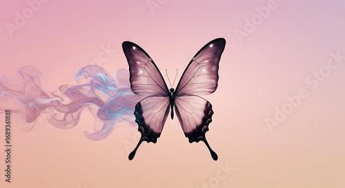© mohibul, Obraz premium Elegant Purple Butterfly with Smoke Trail on Gradient Background Art