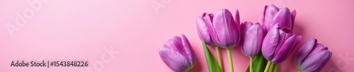 Fototapeta premium Elegant purple tulip bouquet against soft pink backdrop , spring flowers,...