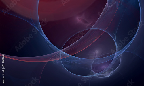 © visualimpression, Naklejka premium Elegant purple violet blue 3d electric orbits in deep dark space. Motion of discharges and lightnings glowing in galactic dimension. Fictional scientific concept. Great as cover print, poster, art.