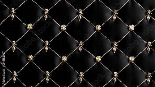 Fototapeta premium Elegant Quilted Black Background with Golden Diamond Lattice Pattern...