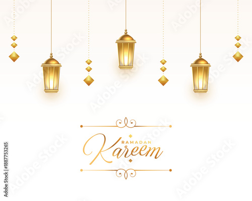 Obraz premium Elegant ramadan kareem greeting with hanging lanterns