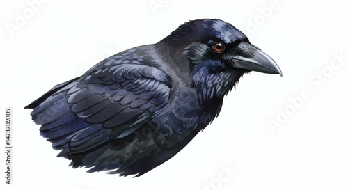 © Watercolor, Obraz premium Elegant raven in artistic portrait style