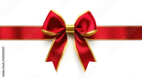 Fototapeta premium Elegant Red and Gold Satin Bow with Ribbon, Festive Gift Decoration