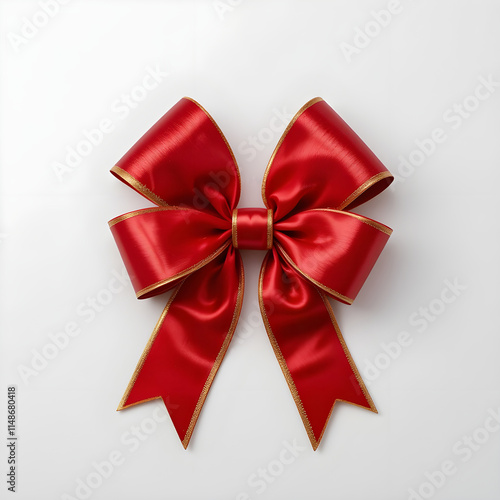 © PhotoHub, Fototapeta premium Elegant Red Bow with Gold Accents on White Background