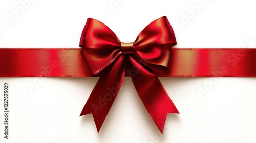 © wiwat apisithpinyo, Fototapeta premium Elegant Red Bow with Golden Accents on White Background